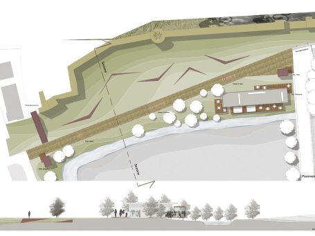Un vaste espace public composé d’une grande place piétonne et d’aire de loisirs ouverte, se propose de faire l’articulation entre Paestum, le centre urbain récent et la plage.